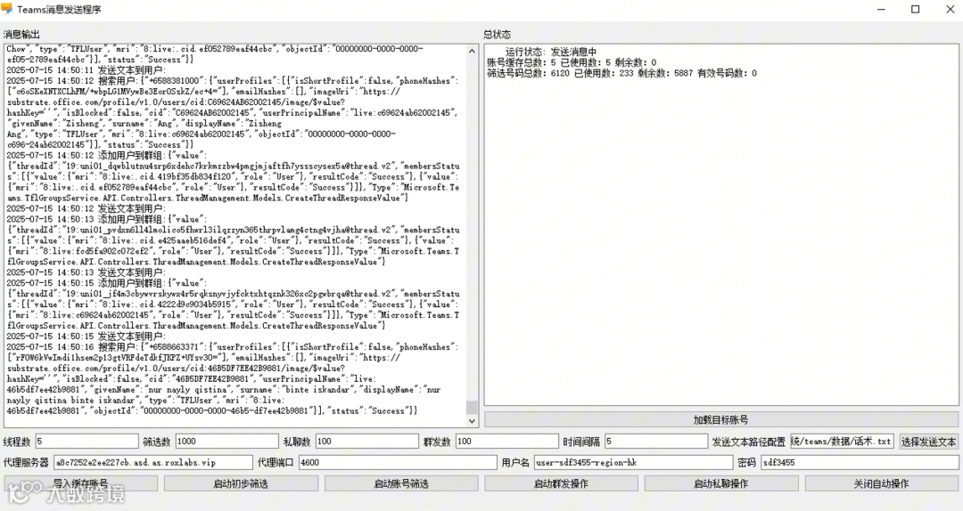 在竞争激烈的海外市场,高效获客是增长核心。Teams群发系统通过智能筛选与多线程群发,助力企业实现精准触达与效率飞跃[k]。