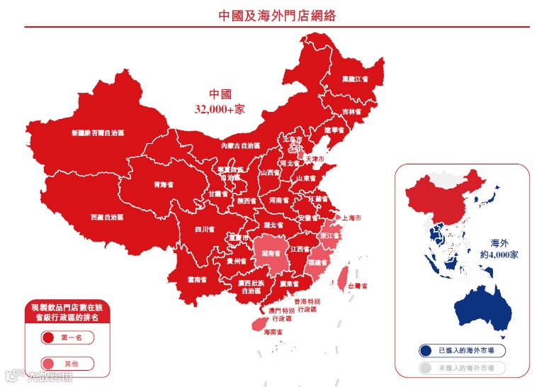 在现制饮品行业,蜜雪冰城是中国第一、全球第二的企业,行业内仅次于全球门店数量约3.8万家的星巴克。同时,蜜雪冰城也是国内业内唯一一家达到3万家门店规模的企业。