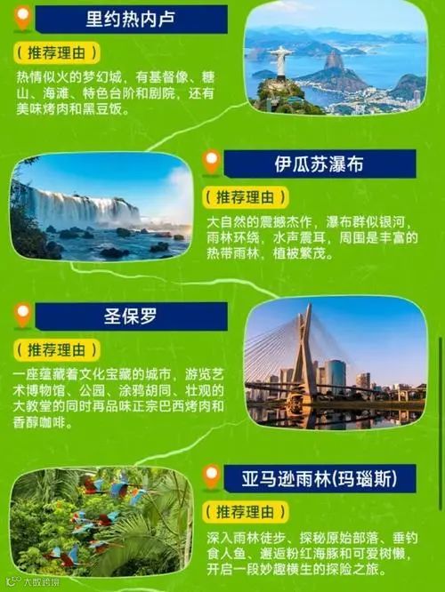 亚马逊河的晨雾还未散尽时,里约热内卢的狂欢节彩车已开始组装。作为 “最性感国家” 的代名词,巴西将野性与热情拧成了独特的 DNA—— 你可以在马瑙斯附近的雨林里追踪粉红河豚,转身又能在里约的科帕卡巴纳海滩加入足球即兴赛。但这片土地的狂野也暗藏锋芒,旅行者需在体验狂欢节的极致快乐时,留意城市边缘的安全警示,让冒险始终在可控的边界内绽放[k]。