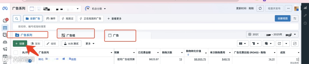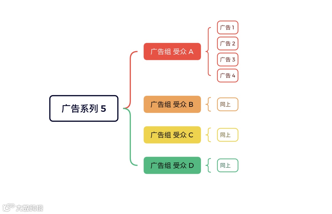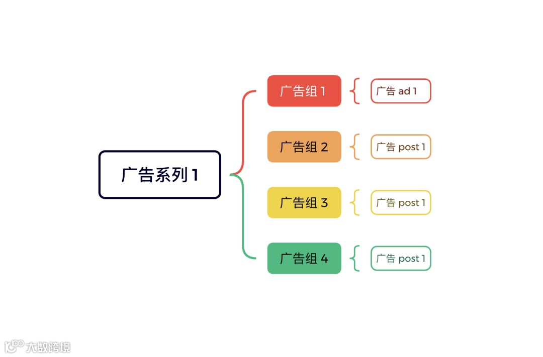 Facebook广告体系遵循“广告系列—广告组—广告”三级结构,这是广告投放不可违背的基础框架[k]。