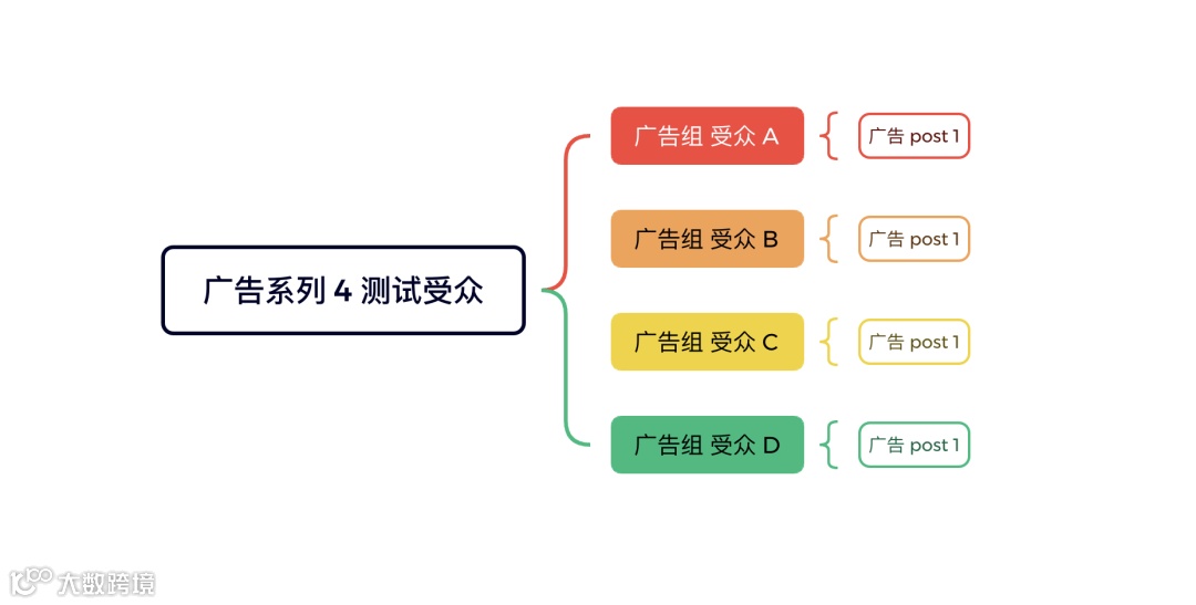 测试新受众(1-4-1):一个广告系列包含四个广告组,分别测试不同人群,统一使用相同广告,建议采用组预算[k]。