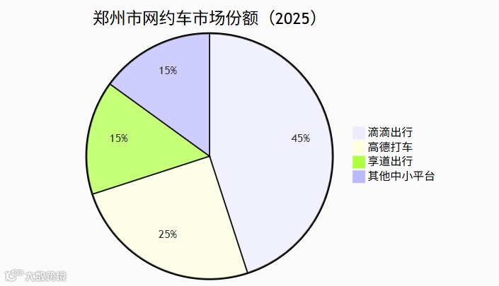 从运力规模看,郑州市网约车市场呈现以下特点:一是平台数量多但集中度高。头部平台如滴滴出行、高德打车、享道出行等占据主要市场份额,而中小平台如小拉出行等生存空间受到挤压。二是运力过剩明显。2025年4月日均实际运营车辆2.93万台,占网约车总数的83.7%,每天约有6000台剩余运力。这一数字与2024年5月的2.91万台基本持平,表明运力过剩问题已持续存在超过一年。三是合规化进程加速。郑州市网约车订单合规率在全国中心城市中排名靠前,2025年5月郑州位列全国第16位,订单合规率超80% ,但仍有提升空间。