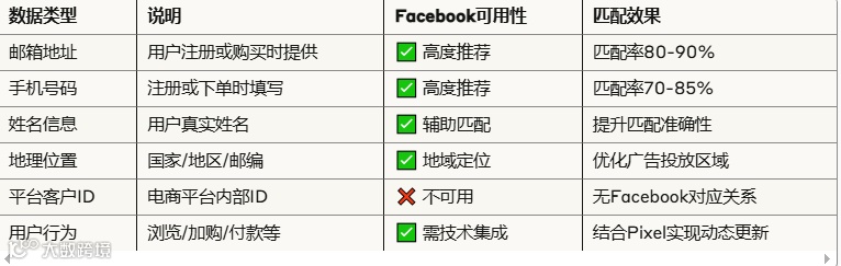 步骤一:进入MetaAdsManager→受众管理→创建受众步骤二:选择"自定义受众"→"客户列表"步骤三:上传CSV文件并完成字段映射步骤四:等待匹配处理(通常需要1-24小时)