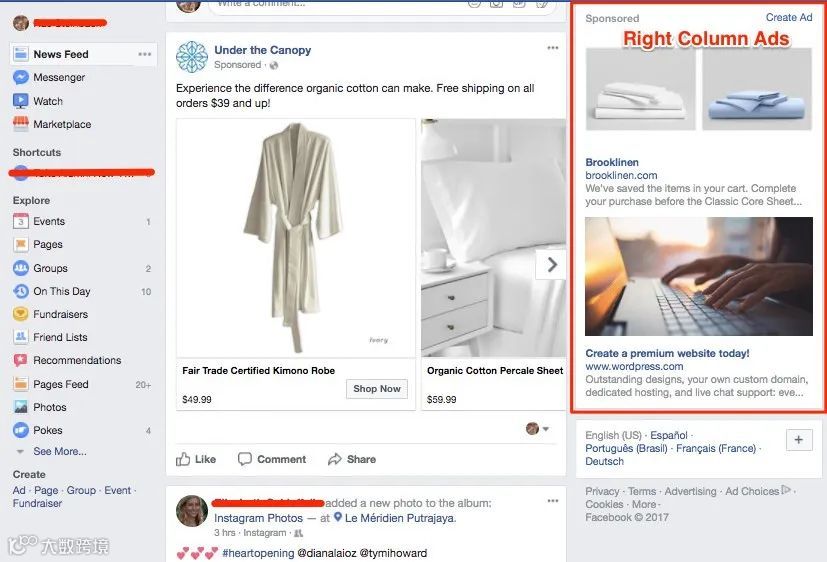 2、Facebook 右栏广告