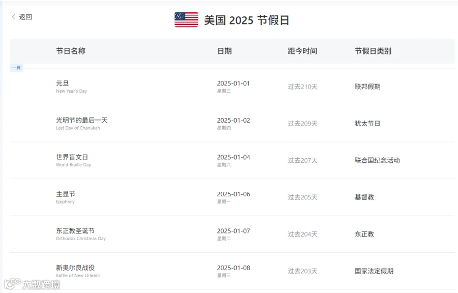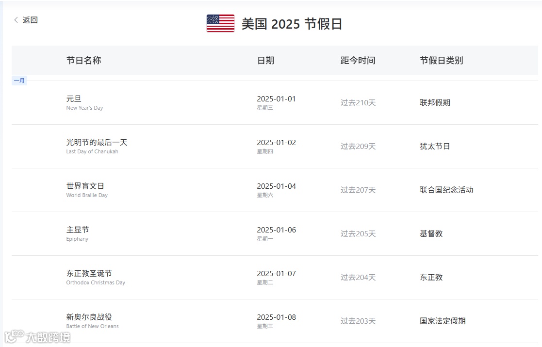 美国的节假日是跨境电商卖家进行年末营销的绝佳机会。无论是感恩节、黑色星期五、还是圣诞节,了解节假日的安排并结合大数跨境节假日查询工具,能够帮助卖家做好充分的准备,制定精准的营销和物流策略。