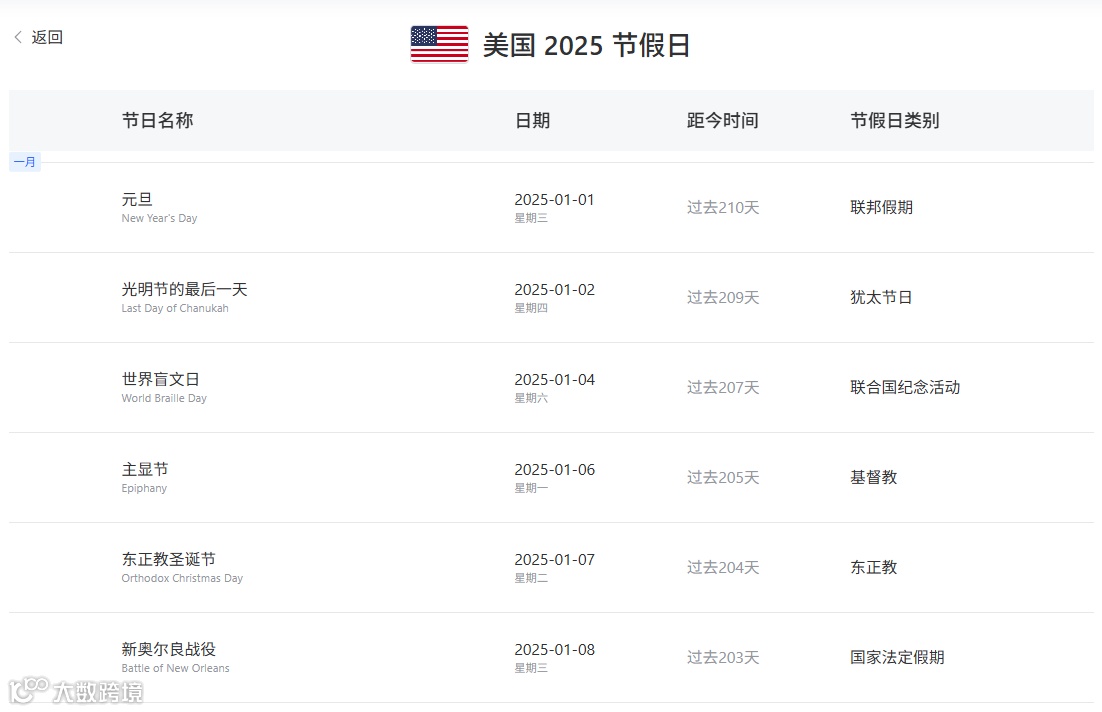 大数跨境节全球假日查询工具为跨境电商提供了一个便捷的节假日数据查询平台,卖家可以轻松了解世界各国和地区的节假日安排,包括美国、欧洲、亚洲等多个主要市场。