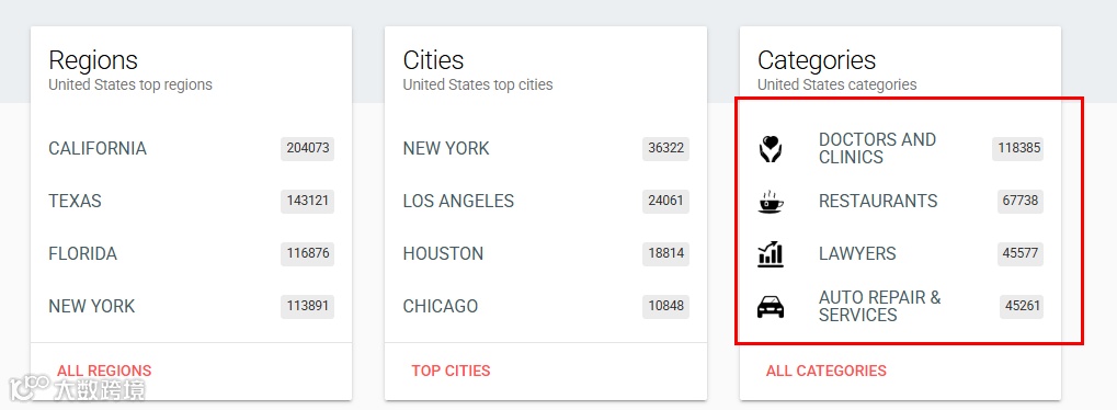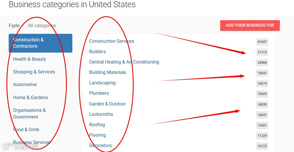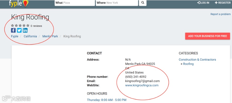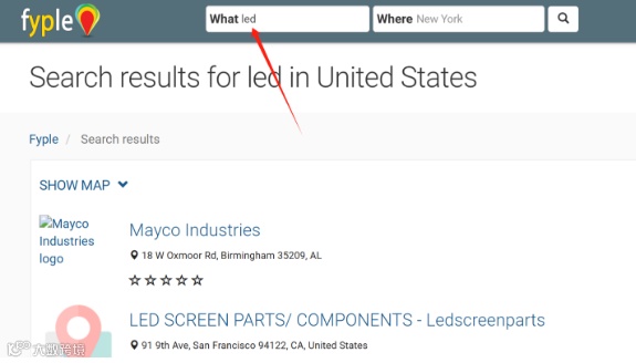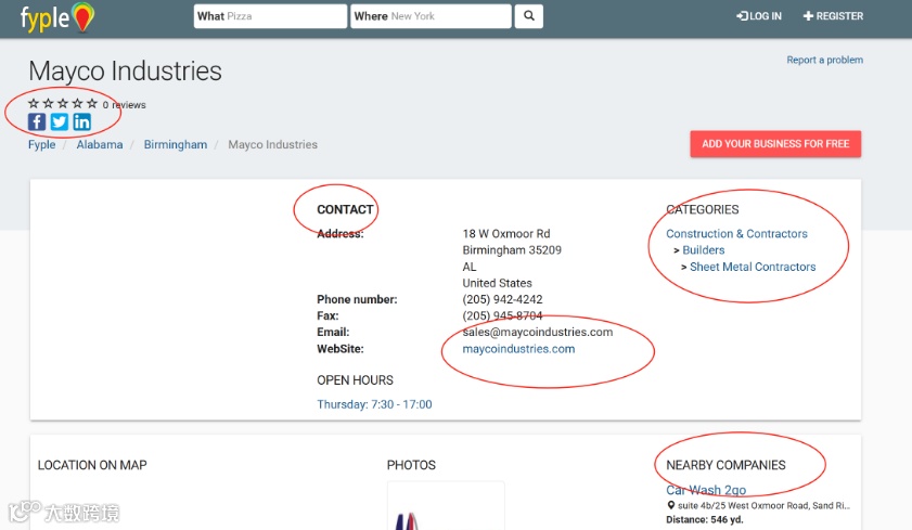 能提供美国、加拿大等国家众多企业的详细信息,包括公司名、社交媒体链接、公司网站和邮箱、产品目录等,还能显示公司附近的一些企业。