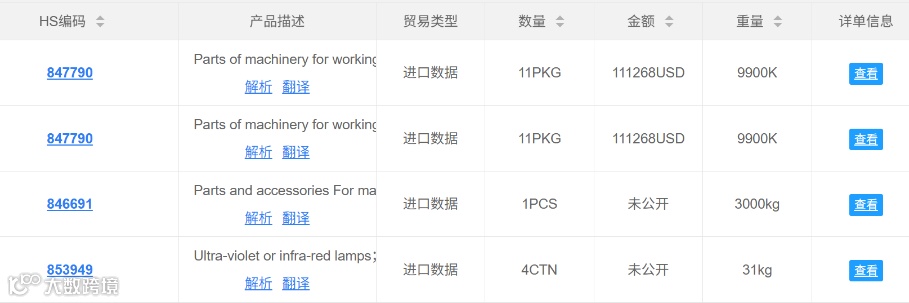 比如这个叫Mayco的公司,官网显示他是有做机械配件的,如果确认是你的潜在客户,接下来我们就可查查看对方是否有做进口。