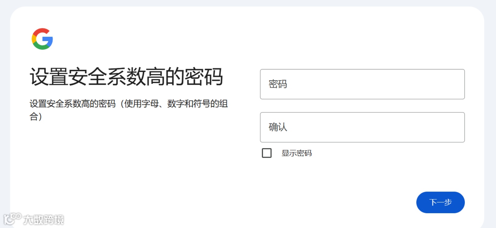 ⑥ 接着设置一个安/全系数高的谷/歌账户密码。