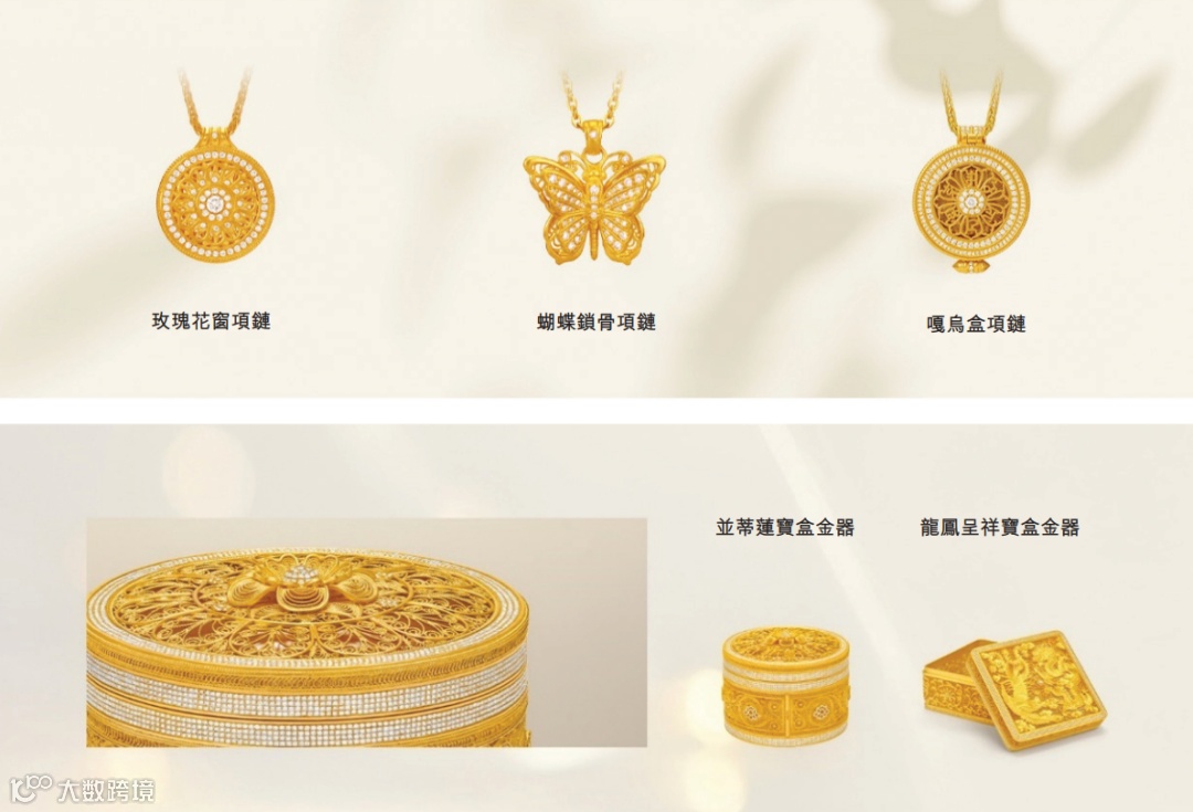 2022年,老铺黄金又以传统铜胎烧蓝技法为基础,锻造出足金烧蓝产品,引发了行业古法黄金的新产品热潮。截至2023年6月30日,老铺黄金已开发包含金饰和金器在内的逾千种产品,拥有976项作品著作权。