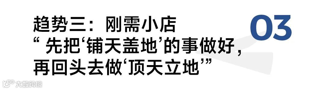 我们这几年,一直在追求的小模型“铺天盖地”到“顶天立地”的过程。过去我们做马路边边大店模型的时候,会发现天花板非常明显,顶天也就是一两千家店规模。而一旦做到小模型、刚需类产品的时候,会发现市场空间非常大。
