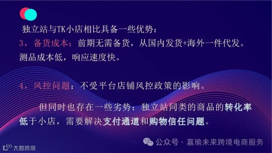 独立站可规避TikTok小店的风控与资质审核难题,支持从中国大陆直发,降低备货成本与物流复杂度,优化供应链管理[[k]]。