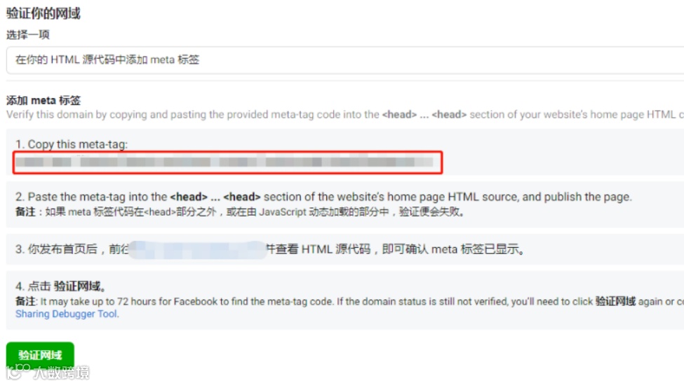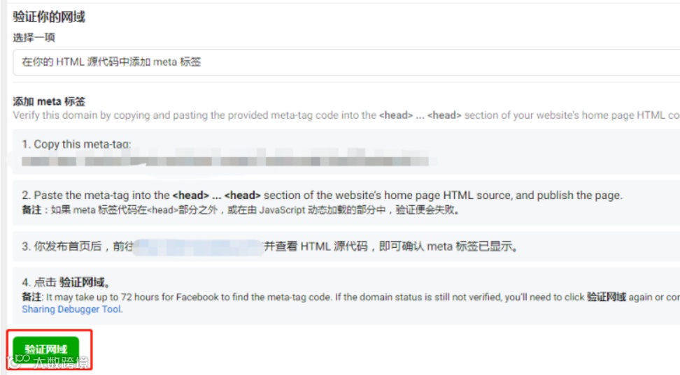 13.回到Facebook商务管理平台(BM)的网域,点击验证网域