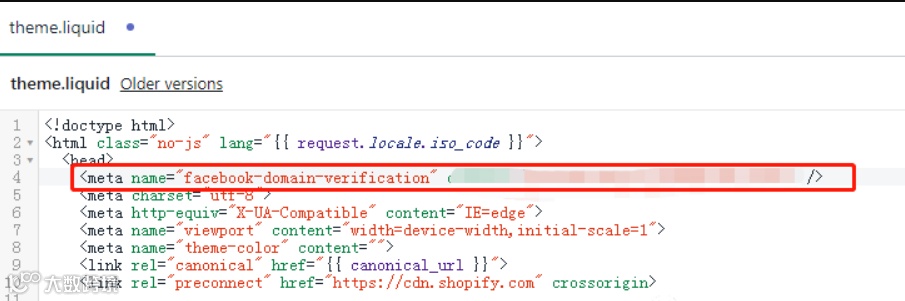 11.在<head>的下一行。把复制的meta tag粘贴进去