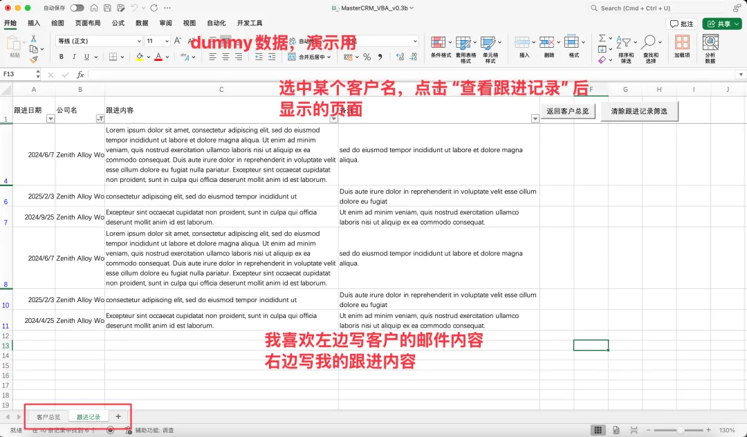 既然你是外贸人,那我送个小工具——MasterCRM VBA。适合单人使用的客户管理工具。
