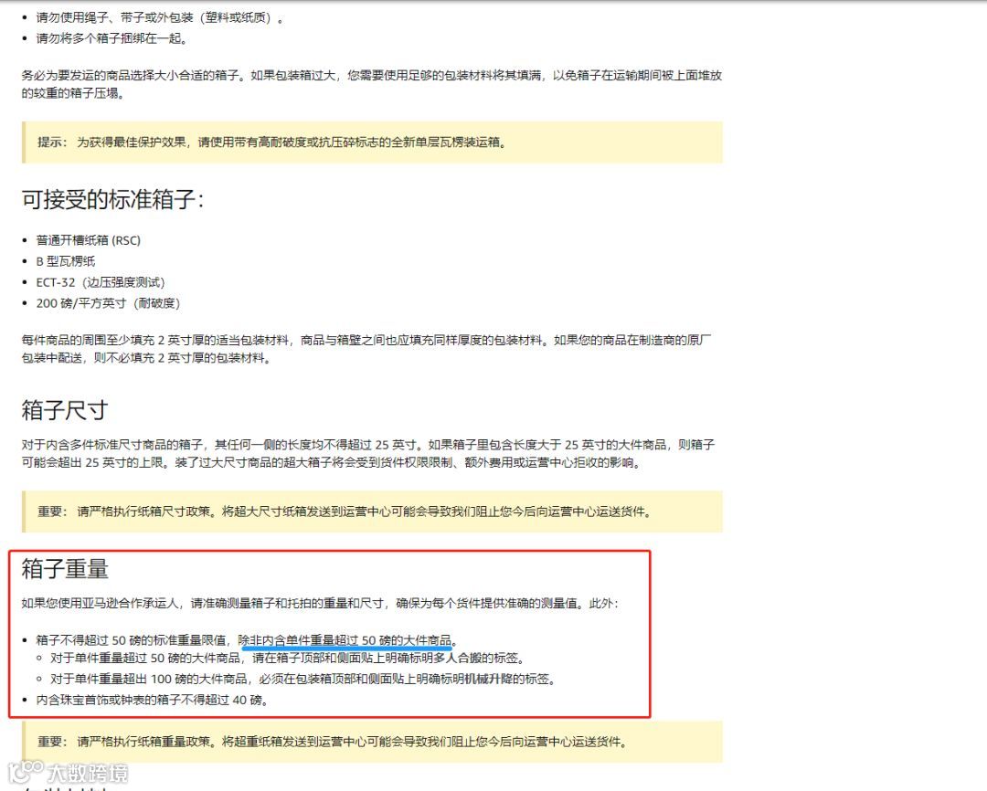 那么,亚马逊对于单箱重量和尺寸有什么要求呢?简单来说,就记住两点:
