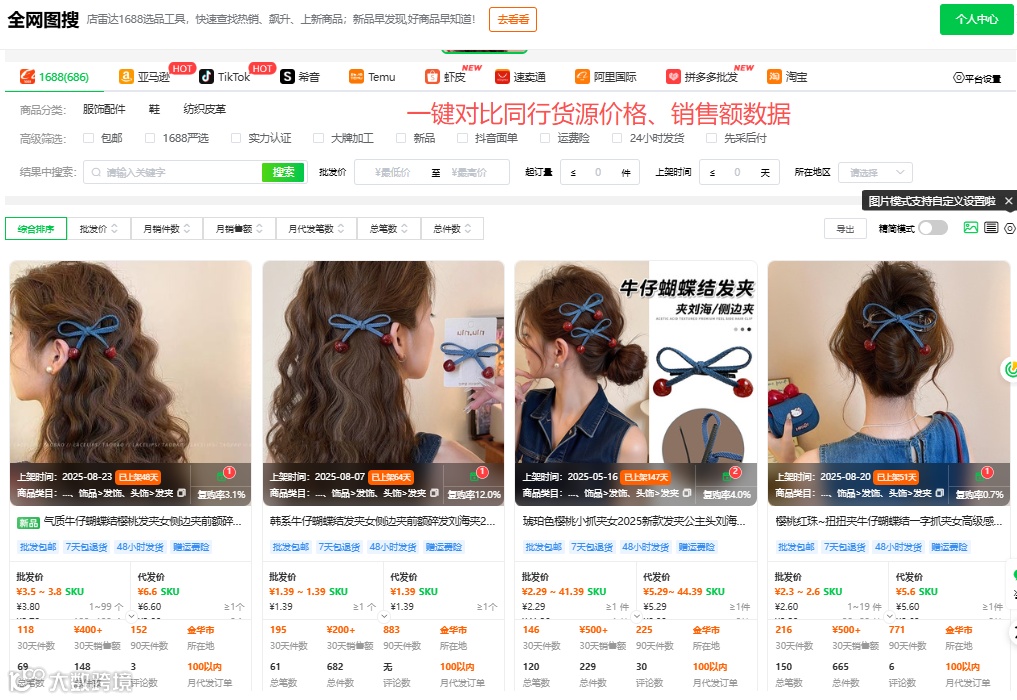 跨境卖家有的时候会选择通过亚马逊、Tiktok、temu的前台来选品,国内卖家则会选择从抖音、小红书、淘宝等电商平台,看到别人卖的不错的品想跟卖,我们就可以通过店雷达图搜或插件来找到1688同款货源,省去手动逐个产品比价、能够极大地提升筛选供应商的时间,更快抢占市场先机。