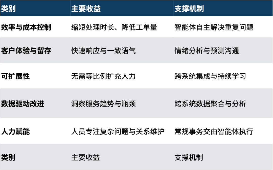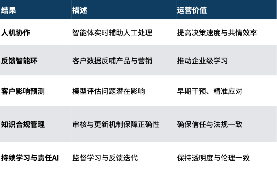 企业因此获得可持续的竞争力:更快的解决、更一致的体验,以及越用越聪明的系统。