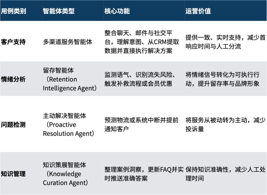 预测型AI智能体可从物流、支付与产品系统中提前识别异常,在客户投诉前预警。