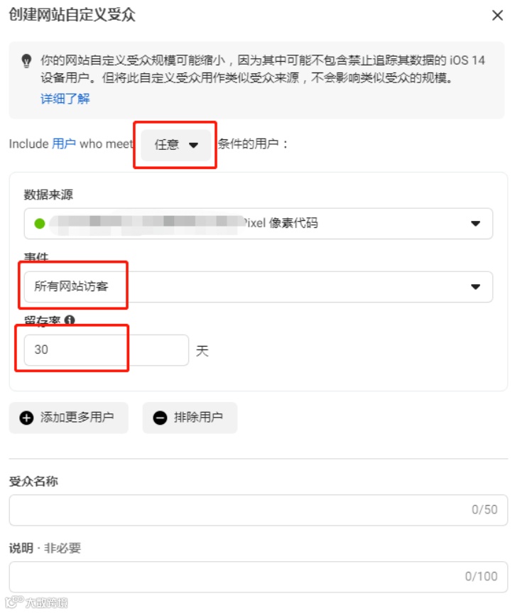 8.事件可按照需求设置,如果是整个网站,可选择所有网站访客。如果是某个页面,可选择特点网页的访客。