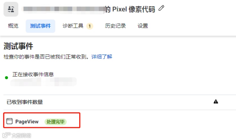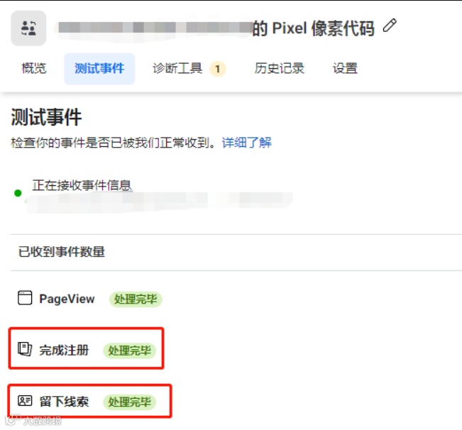 9.如果网站安装了Pixel像素代码,刷新测试页面就会显示正在接收事件信息。