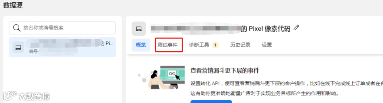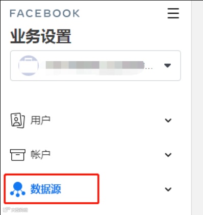 1.打开Facebook商务管理平台(BM),点击数据源