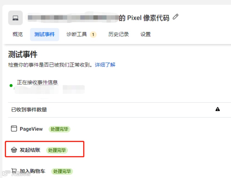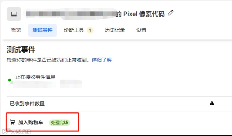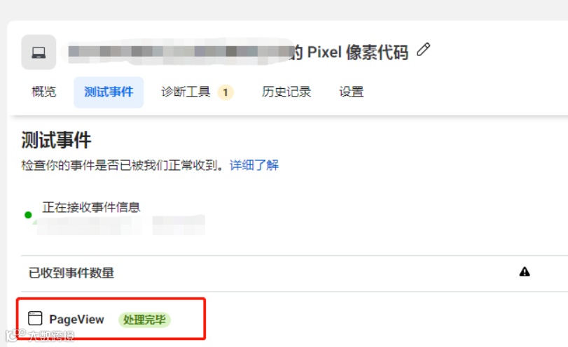 9.如果网站安装了Pixel像素代码,刷新测试页面就会显示正在接收事件信息。