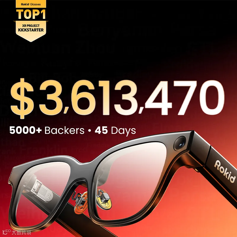 近日,Rokid Glasses在海外众筹平台Kickstarter上惊艳亮相,以361.4万美元的骄人成绩创下XR设备全新众筹纪录,强势登顶全球智能眼镜众筹榜首,其火爆程度充分展现了产品引领市场的非凡魅力。