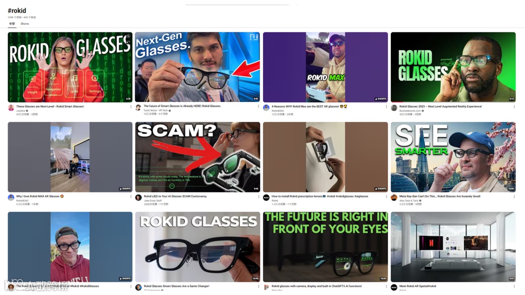 而在YouTube上,Rokid则转向深度内容路线,与科技博主合作,推出严谨全面的评测视频,内容不仅涵盖光学显示、佩戴体验、续航能力、语音识别率等核心参数,更通过横向对比与极限测试,客观呈现产品实力,以专业内容强化品牌信任感。