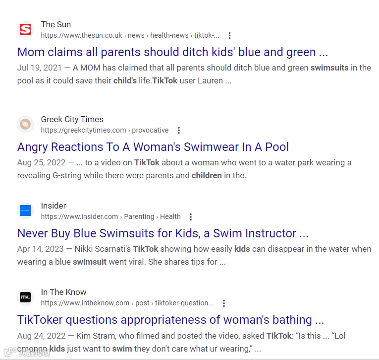 因此,当这条视频在 TikTok 被病毒式传播后,一时间也引起了众多外媒的关注,同时对儿童泳衣颜色的安全性问题进行了探讨。