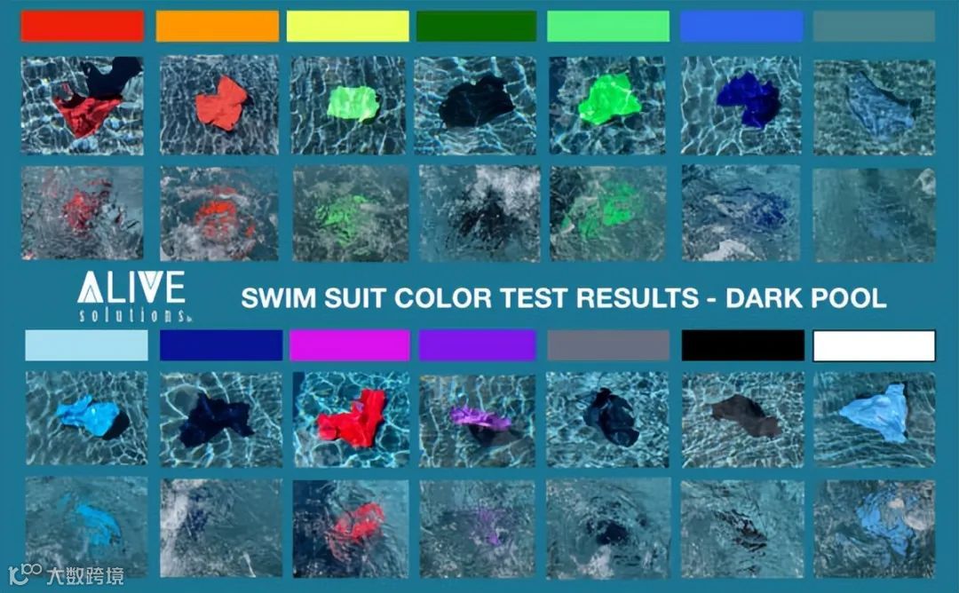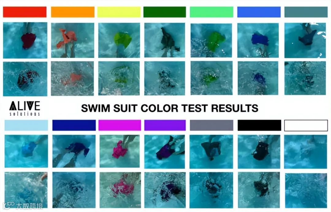 显然在测试中,荧光橙、粉红色和红色等鲜艳颜色是儿童泳衣最安全的选择,因为这些颜色很醒目,在水中极易被发现,从而更容易确认孩童游泳时是否安全。相比之下,蓝色、浅蓝色、绿色泳衣则很难在水中对孩子的位置进行定位。