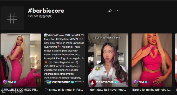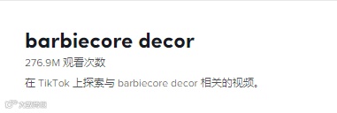 在 TikTok 上,#barbiecore decor 在全平台的浏览量也达到竟然的 2.769 亿次,且还在持续增加中,越来越多用户开始在 TikTok 展示各类粉红色、芭比娃娃风格的内饰和配饰。