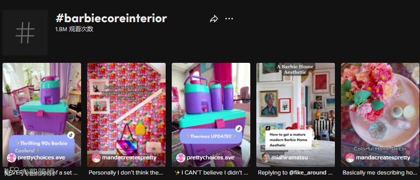 另一标签 #barbiecore interior 也得到 180 万左右的浏览量。