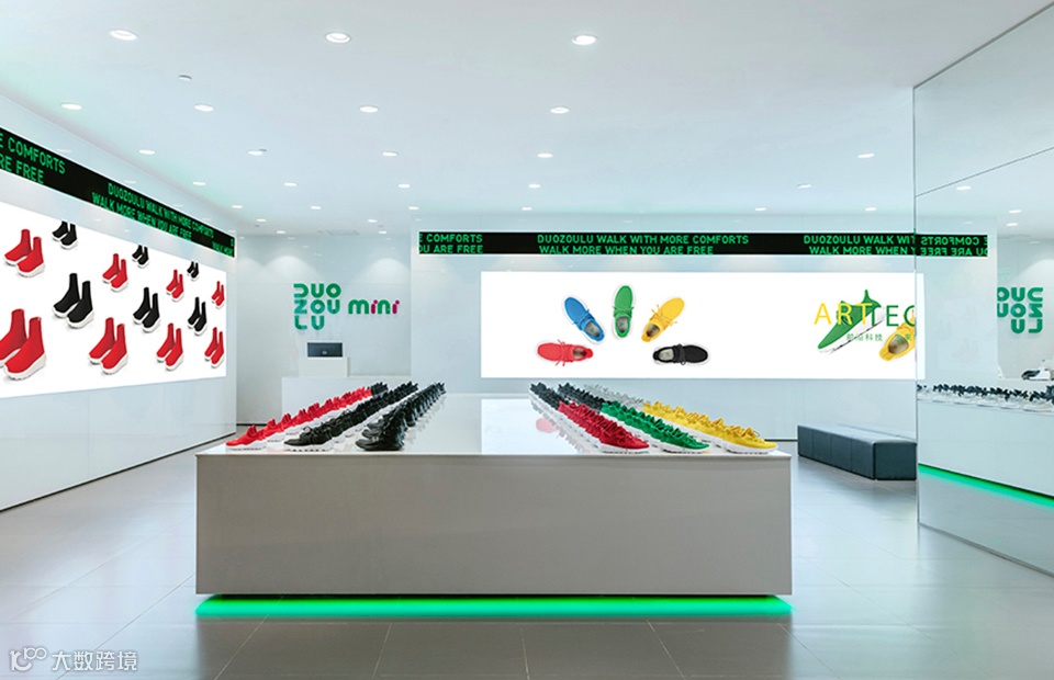 「多走路」是深圳月步文化科技有限公司旗下品牌,2016年底开出首店,4年内在全国90多个城市布局400家直营门店[1]。虽然门店规模不及斯凯奇(2600多家),但已接近其六分之一,扩张速度不容小觑[1]。