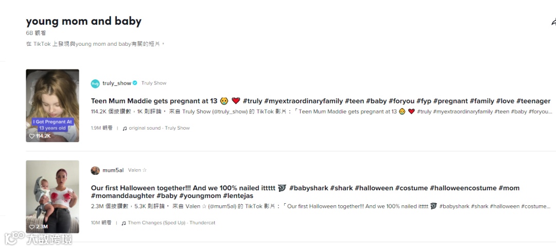 在 TikTok 平台上,关于宝妈总流量高达 60 亿,如此庞大的用户基数下,代表婴儿用品相关的视频往往能获得极高的关注度,且这些拥有相当大购买力的年轻宝妈,往往很容易在在 TikTok 影响者的推荐下,去购买一些更具便利性的婴儿用品。