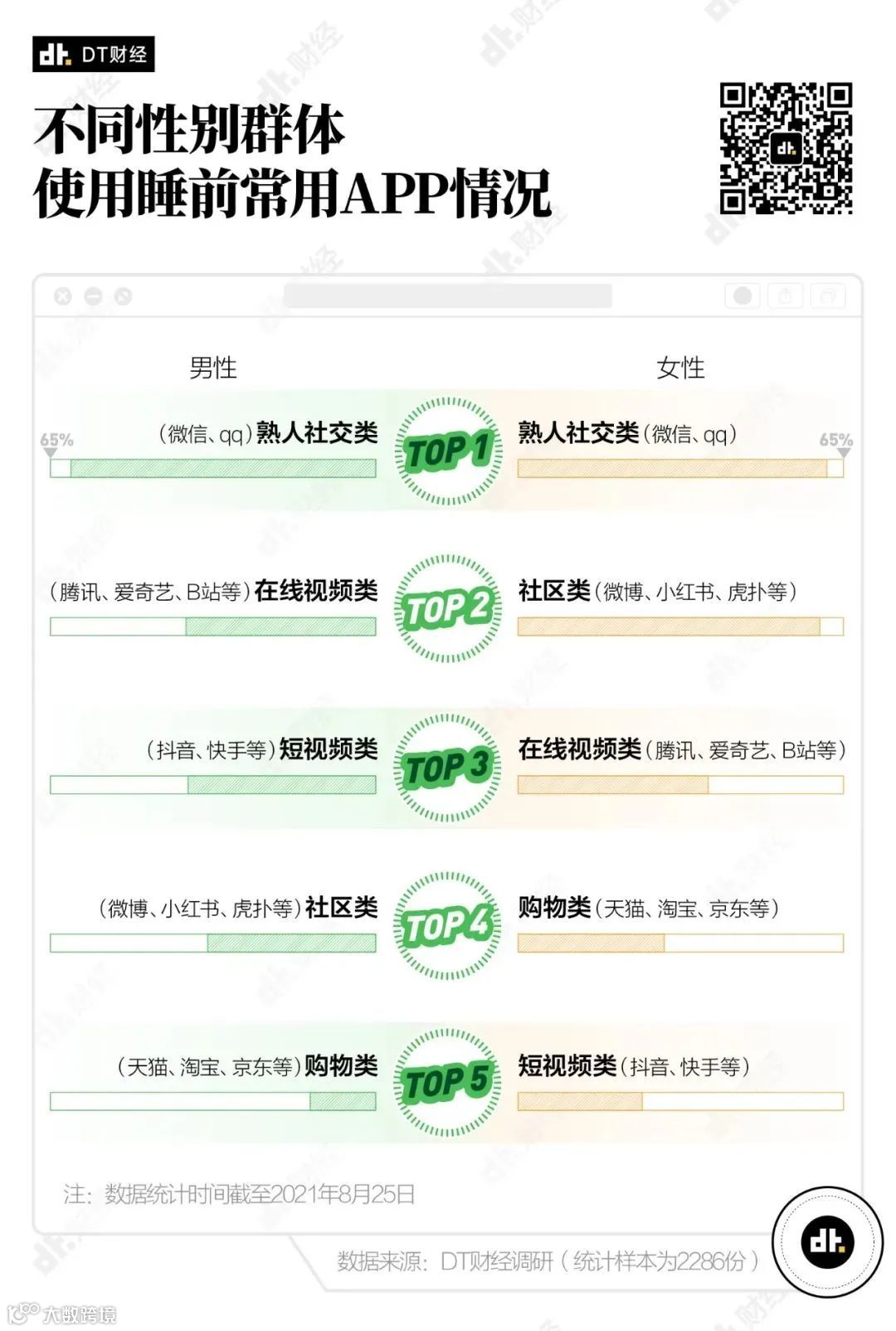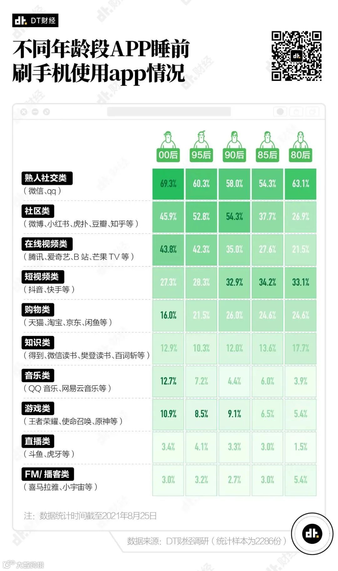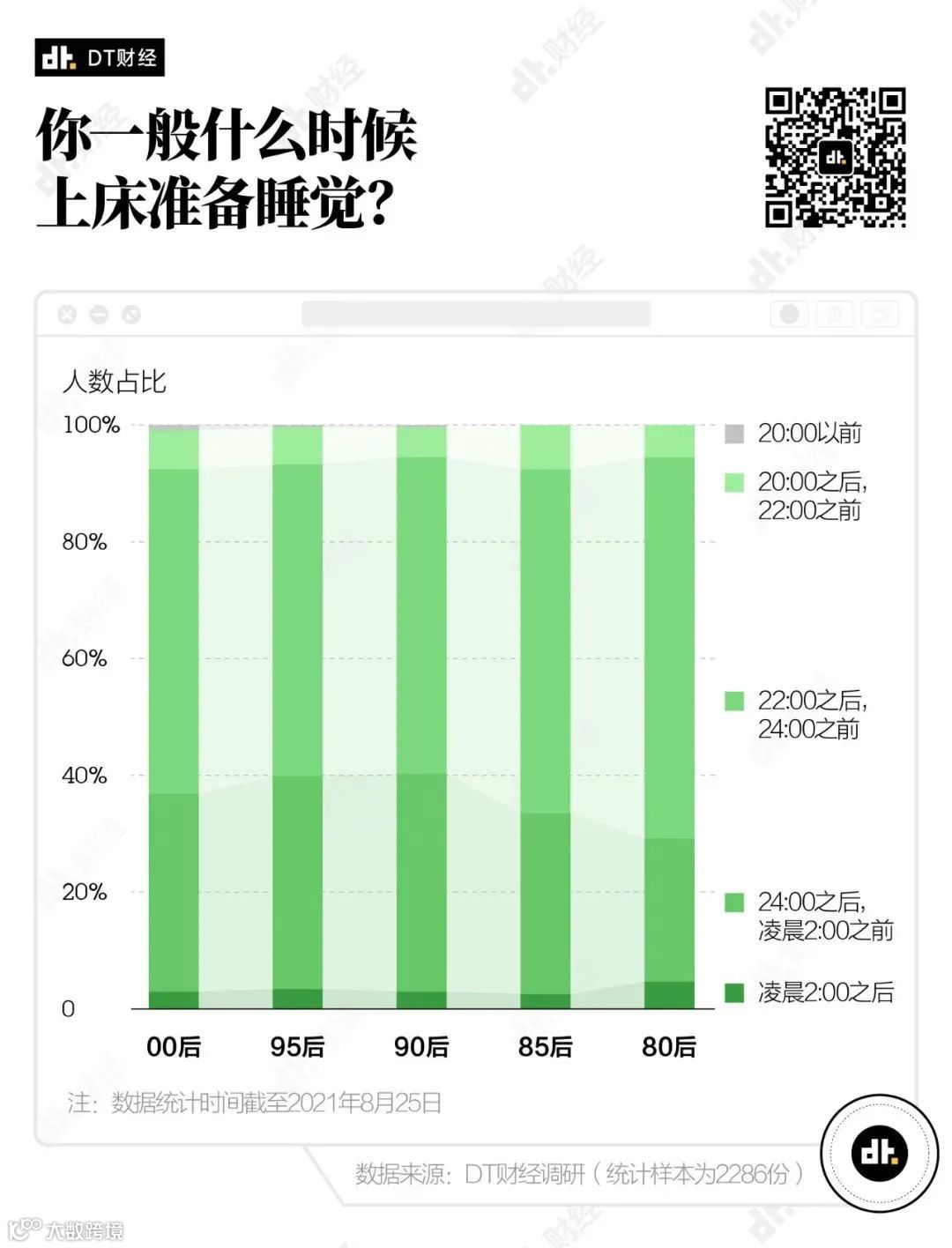 约5成年轻人在晚上10点至12点间准备睡觉,4成人在凌晨之后才上床。更多人拖延入睡时间是因为刷手机。白天没有自己的时间,只有晚上才属于他们。