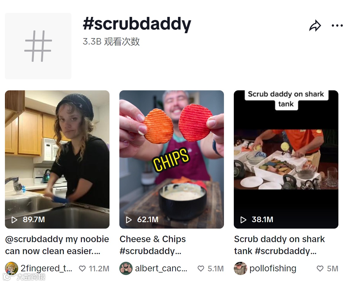Scrub Daddy营销团队也并非仅仅是依赖搞怪的创意剑走偏锋,在TikTok上Scrub Daddy品牌标签就积累下了33亿的播放,而很大一部分是由网红和消费者贡献的。