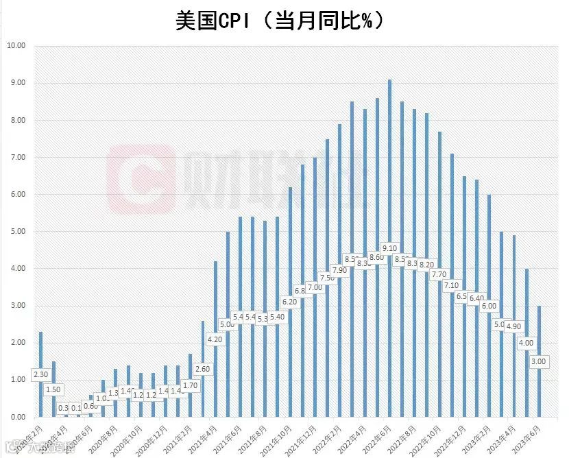 昨晚的新闻,大家应该都看到了:美国6月CPI同比上升3%,连续12个月回落,预估为3.1%,前值为4.0%;6月CPI环比上升0.2%,预估为0.3%,前值为0.1%。美国通胀上个月放缓至两年多来最低水平,表明一直专注于缓解物价压力的美联储进一步取得成功。
