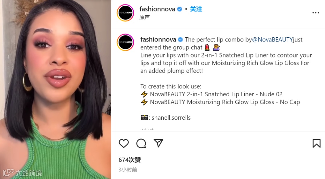 这些品牌大使的优势在于,Fashion Nova 通常仅需提供免费的服装成本,就能拥有庞大的 UGC内容支持,创造了共生性品牌增长。