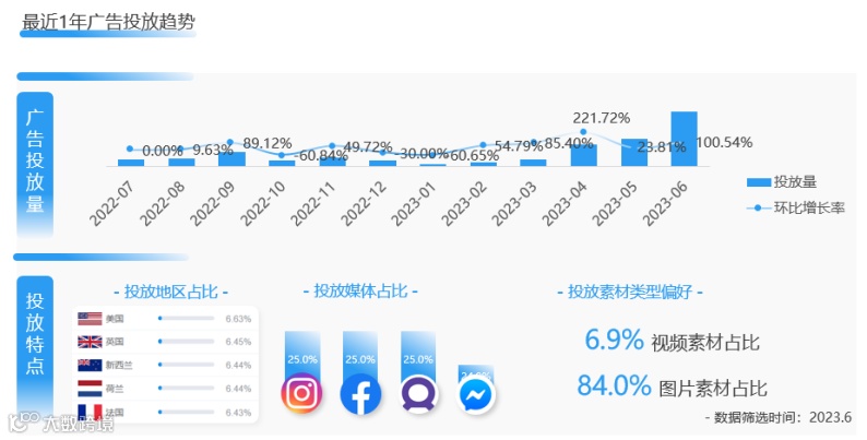 从最近一年内的投放数据来看,Eyekeeper 对广告营销的支出在不断上升,其投放广告数呈现明显增长趋势。其中在Q2季度投放数上升明显,4月份投放量环比增长超过200%,6月份环比增长超过100%。