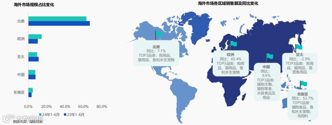 2023-2024年6月份,东南亚线上宠物用品的销售额达到101.6亿元,且2024年1-6月份的销售额同比增长超50%。