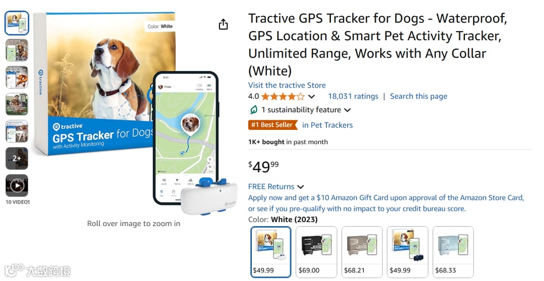 基于此,市场需求逐渐强烈,一款可穿戴宠物追踪器在亚马逊上火了,过去一个月内销量超4千单,累计销售高达22万美元,成为该类目的TOP1。