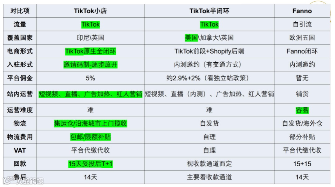 从流量上来看,前面两个电商平台会比Fanno更有优势,从覆盖国家上看,Tiktok一定是首选。而在佣金这方面,目前Fanno暂时没有佣金,具体大家可以对比图片看看。