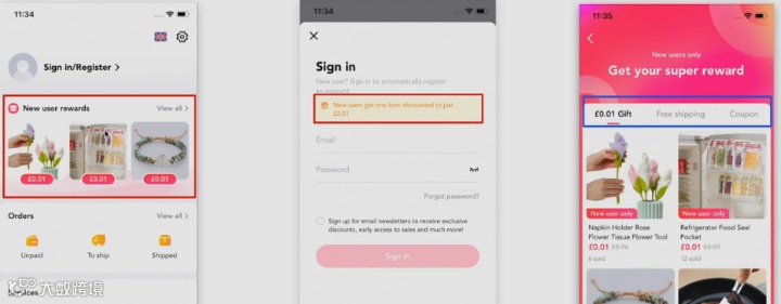当你下载完Fanno还未注册时,你会看到有一个很大的区域直接告诉你新用户的一些优惠跟折扣。一旦你点击进去注册,他告诉你每个新用户可以获得一个产品很深的discount,只需要0.01磅。