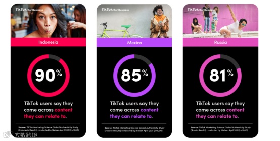 ·在俄罗斯市场,平均有81%的TikTok受访用户表示在TikTok上看到的内容能引起共鸣;