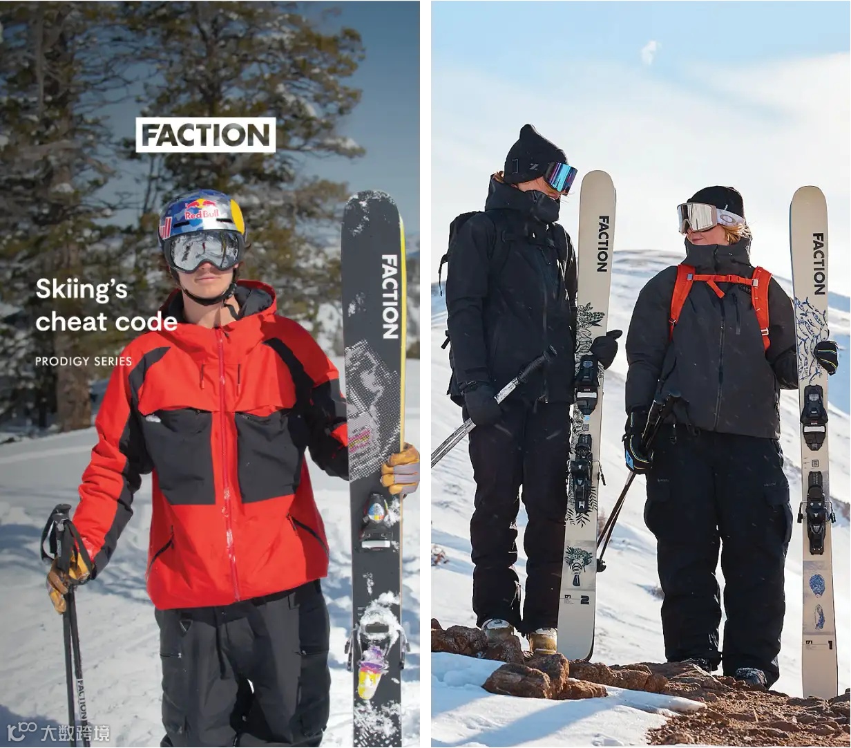 Faction是陪伴谷爱凌夺取2金1银的瑞士高端双板品牌,其产品曾斩获全球100多项奖项;谷爱凌与Faction还联名推出了多款滑雪板,有的全球发售,也有的专为亚洲市场打造,是滑雪用品市场观察中很特殊的一个品牌。