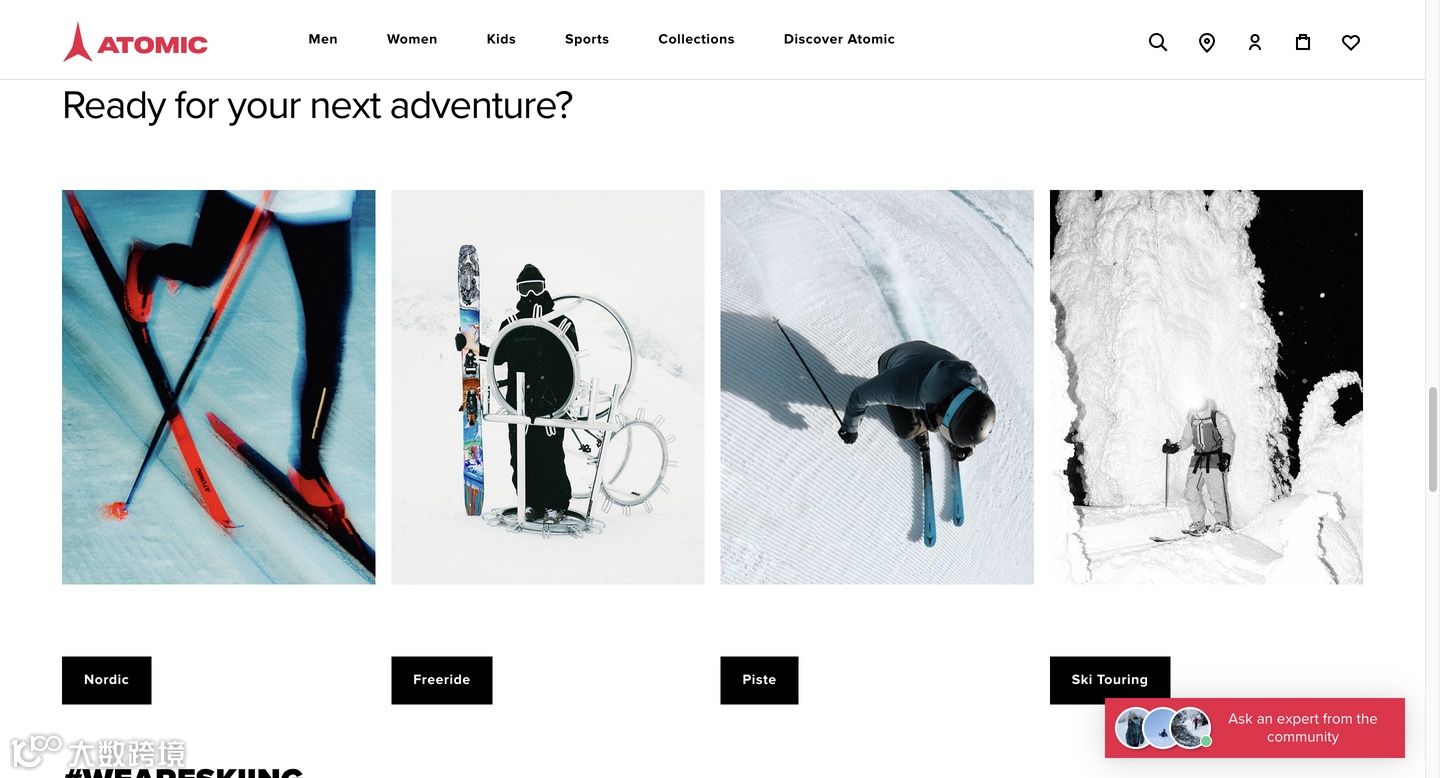 Atomic Skis的产品有风格鲜明的视觉美学:以鲜艳的色调、动态的图形和大胆的品牌logo为特征,呈现出现代而充满活力的外观。