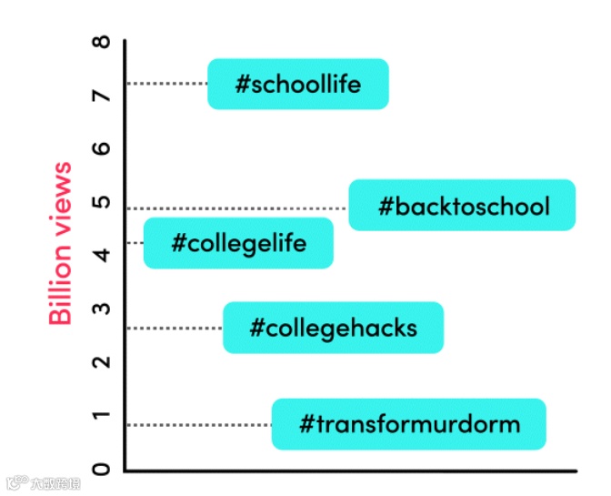 在TikTok上,话题#school(学校)被浏览了660多亿次。想加入热门趋势或开创全新话题的品牌,都不妨先深度探索当下TikTok学生社区中的热门谈资,包括音乐、特效和其他趋势: