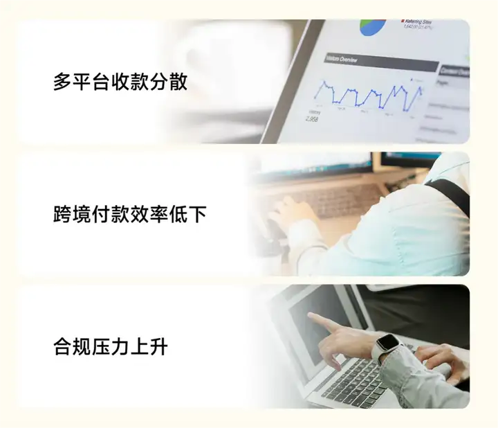 - 支出场景激增,跨境付款效率低:海外合作方收款方式各异,传统跨境支付流程冗长、到账慢,严重影响业务运作节奏与效率