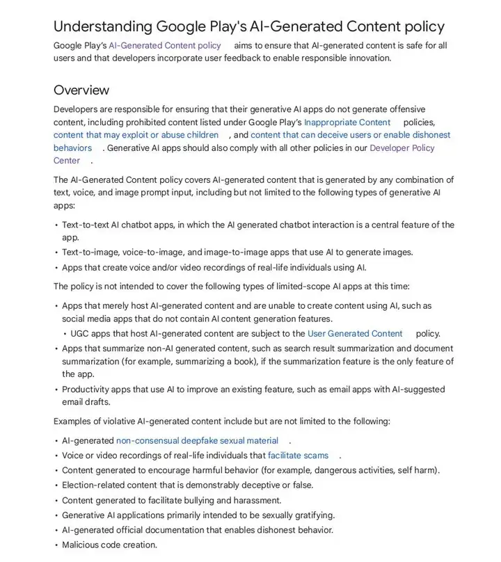 02-Google Play AI新规:AI生成内容需加强安全控制